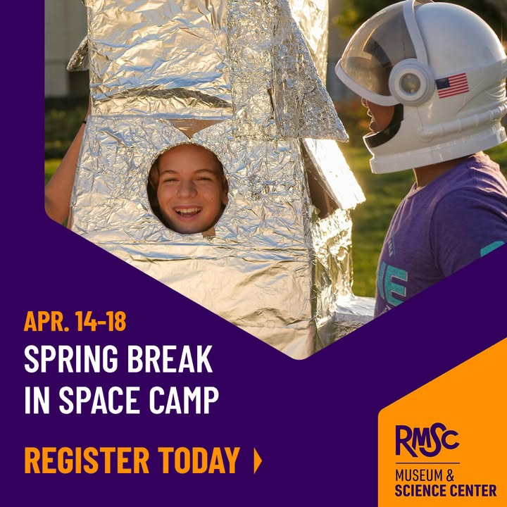 The Rochester Museum & Science Center is hosting a Spring Break event called "Spring Break in Space Camp" from April 14 to April 18. The camp offers participants a chance to explore astronautical history and experience challenges similar to those faced by astronauts. The program is designed for children in two age groups: 6 to 8 and 9 to 11 years old. Families can register for the camp at the provided web address.