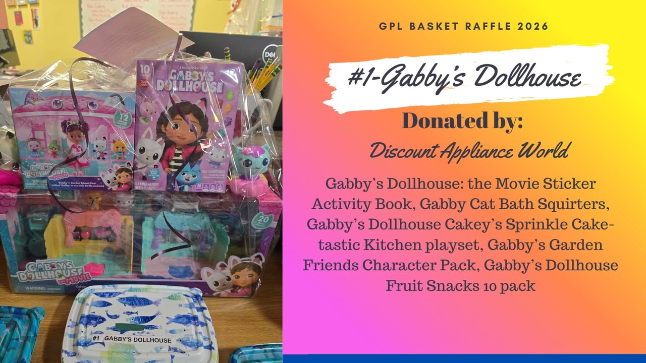 Gabby’s Dollhouse basket donated by Discount Appliance World includes: