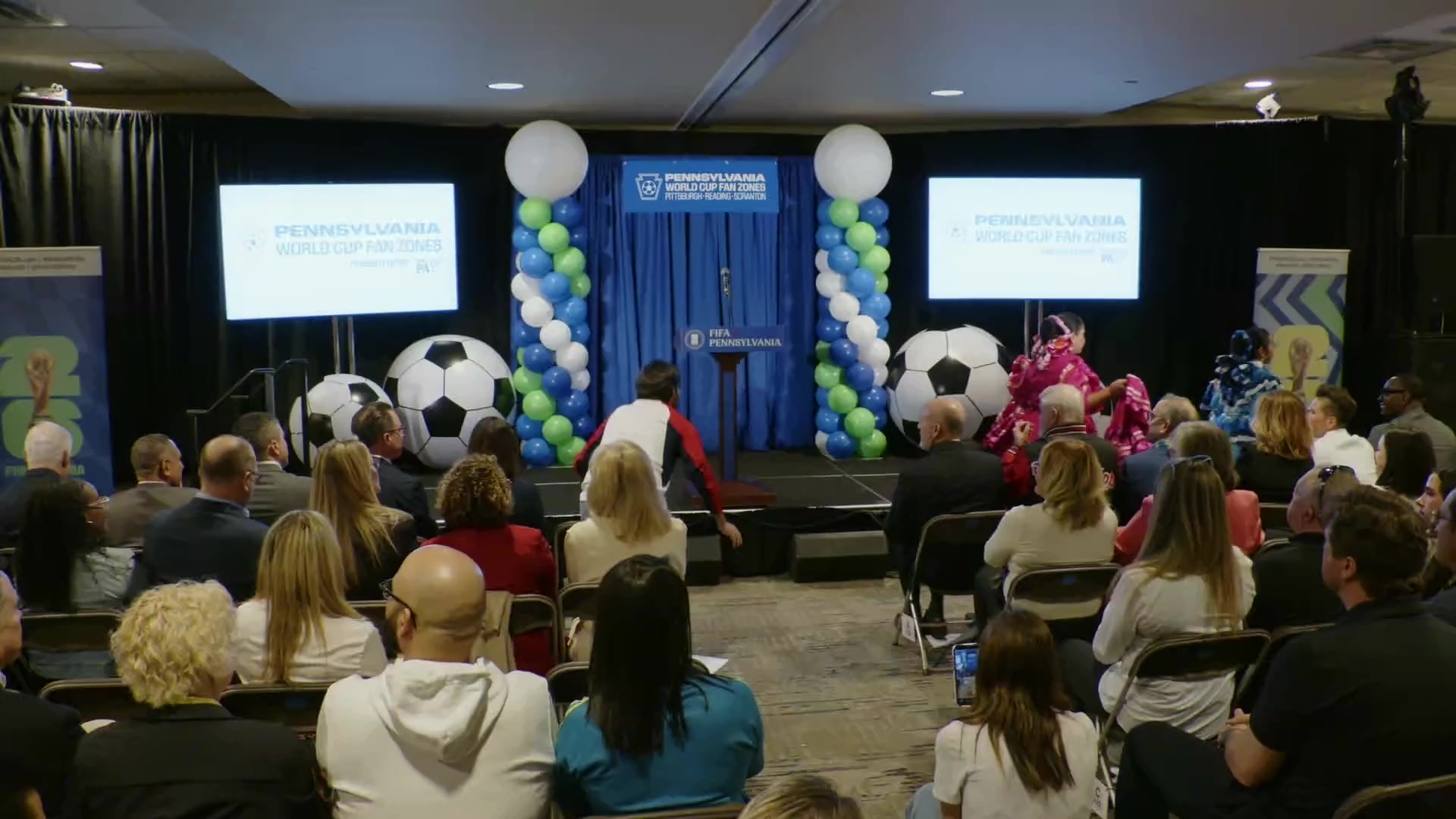 The release lists World Cup fan zones and a Pittsburgh meeting space, and includes references to FIFA and Pennsylvania.